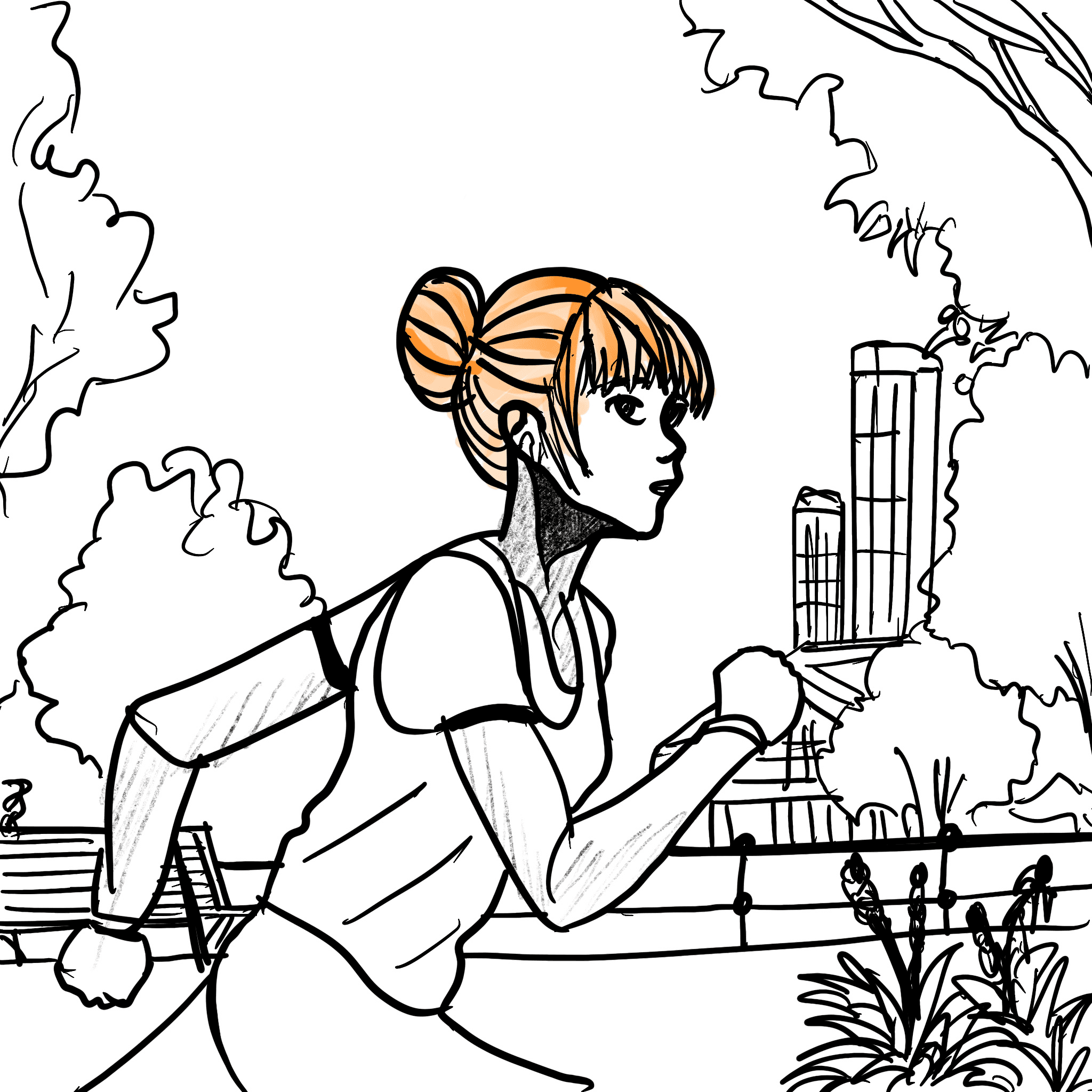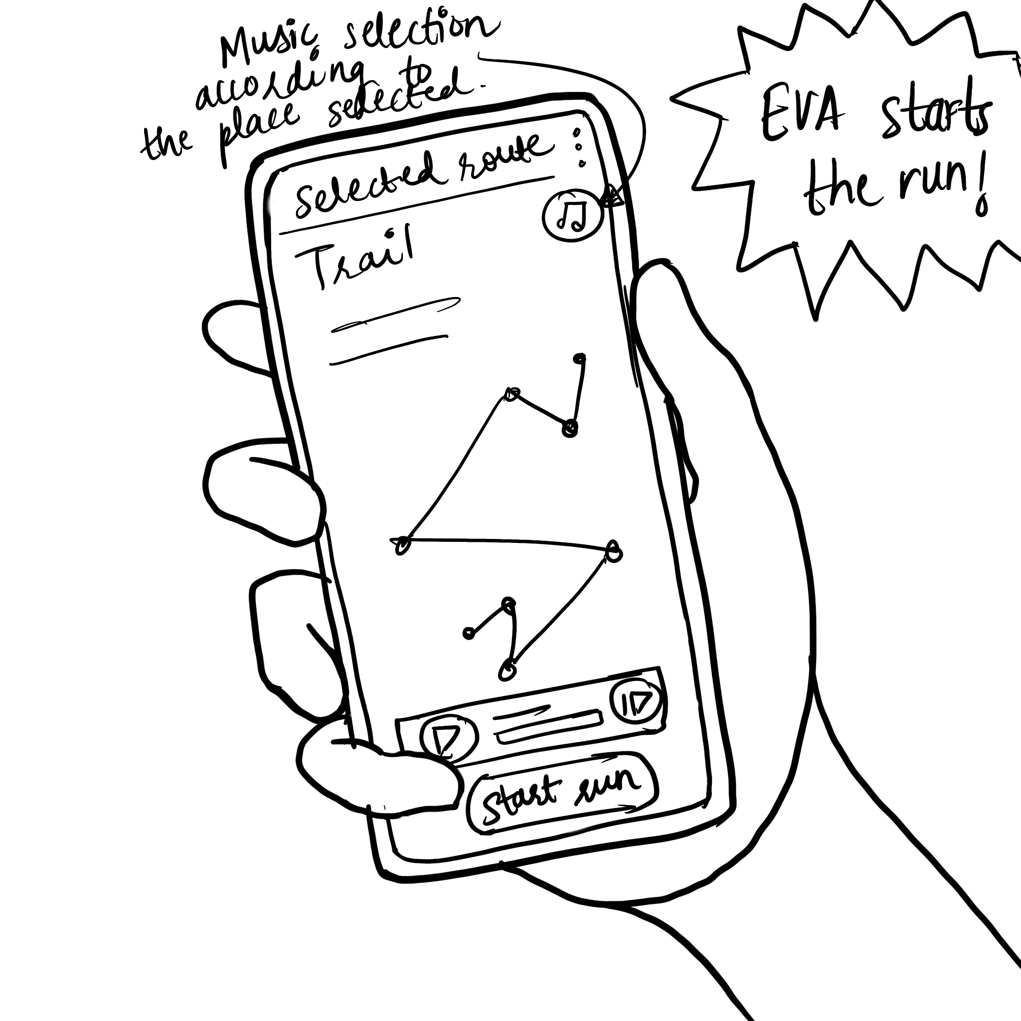 Eva Selects the route, the music she likes and starts to run. The GPS tracks how much kms she covers in 10 mins..