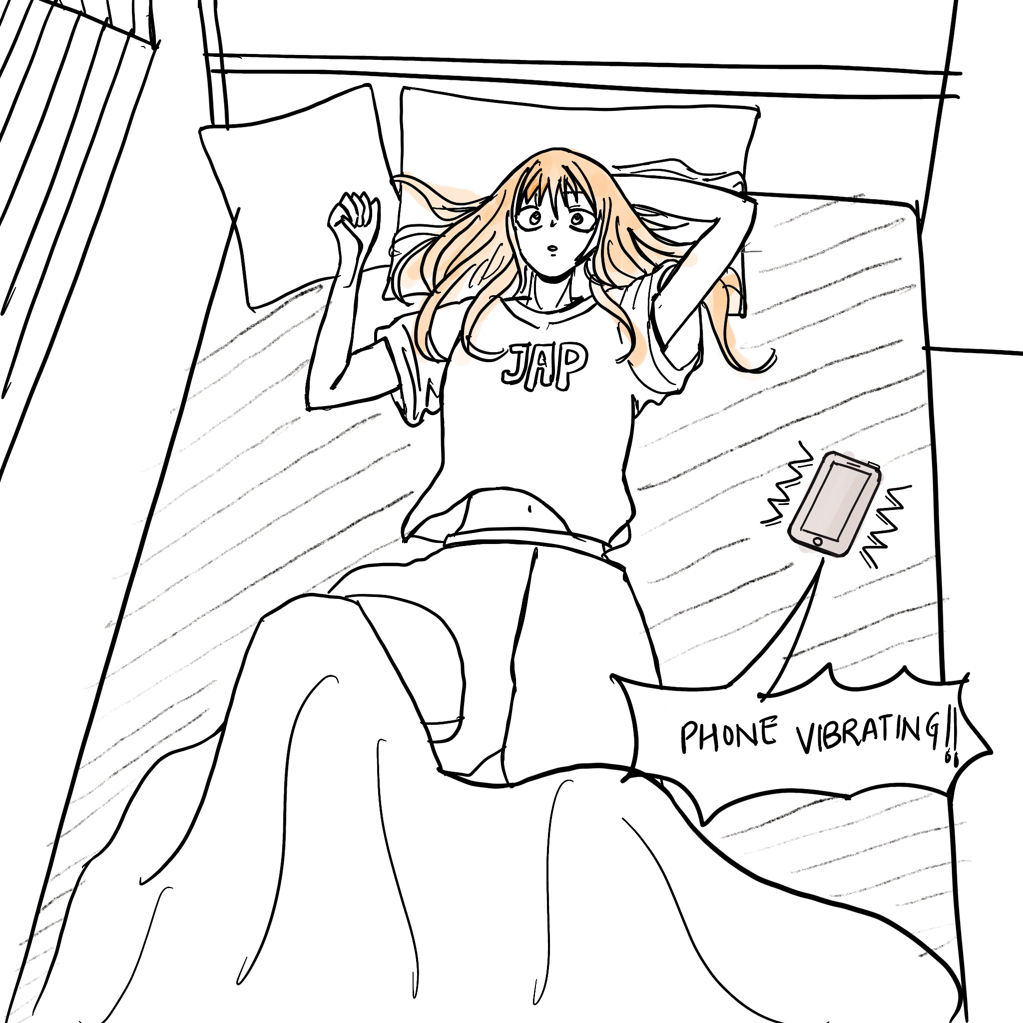 At morning, phone vibrates and Eva wakes up to check what is this sound of.