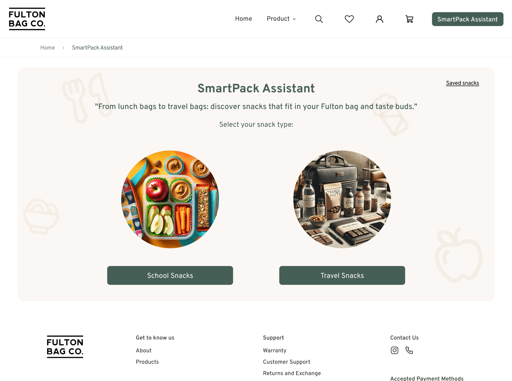 How might we showcase the SmartPack Assistant as a way to simplify snack planning while emphasizing Fulton lunch bags as the perfect companion for organized and stylish snacking?