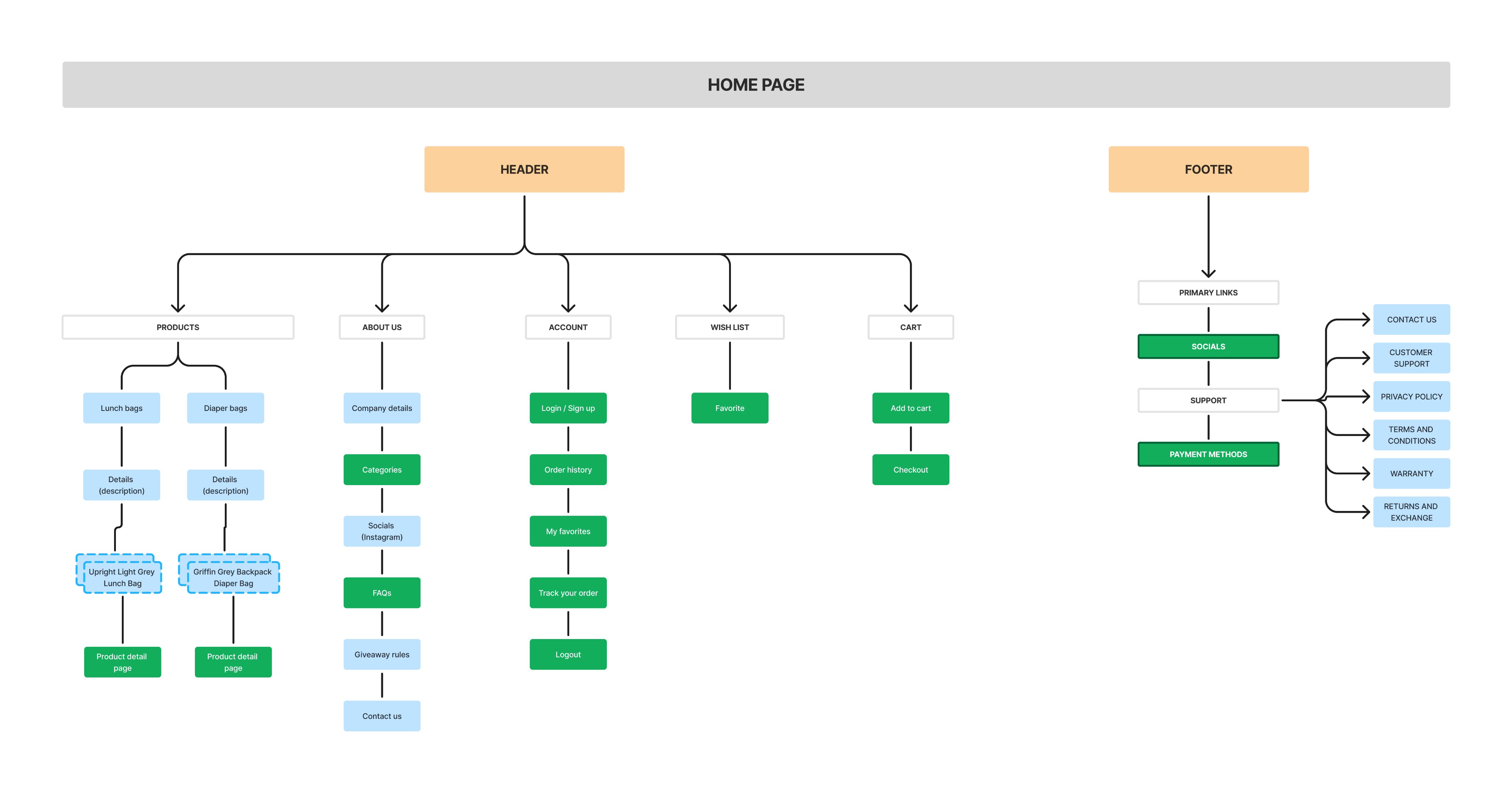I created a site map to visualize the structure and organization of the new website design, showcasing its interconnected features and pages. This was essential for planning navigation, defining page relationships, and ensuring a seamless shopping and browsing experience.