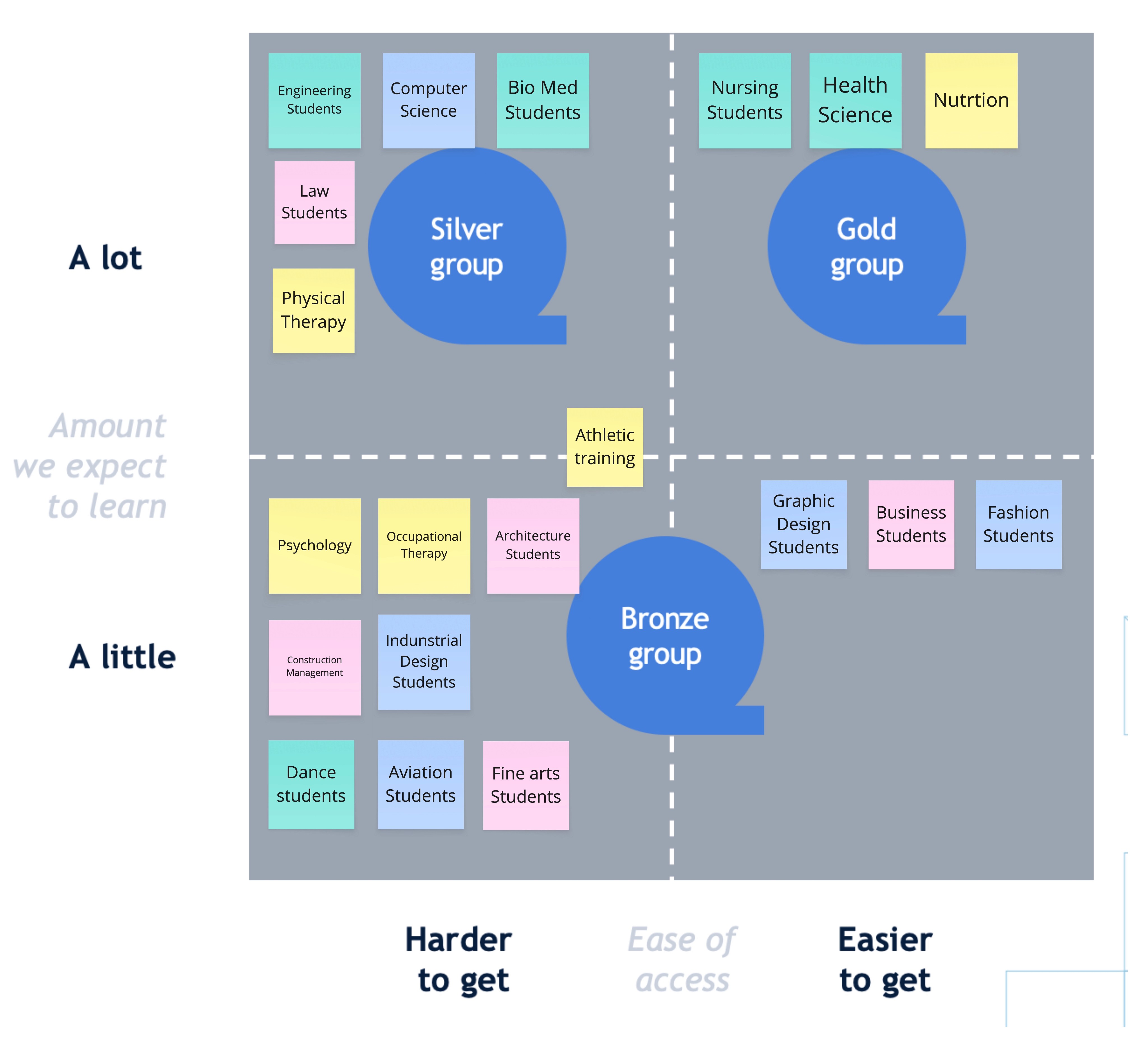 Identifying our target audience was a crucial first step in our research. It was essential to determine which groups would be more accessible and willing to share their AI usage experiences. To do this, we conducted an exercise to pinpoint the subjects that could provide us with valuable insights into AI usage.